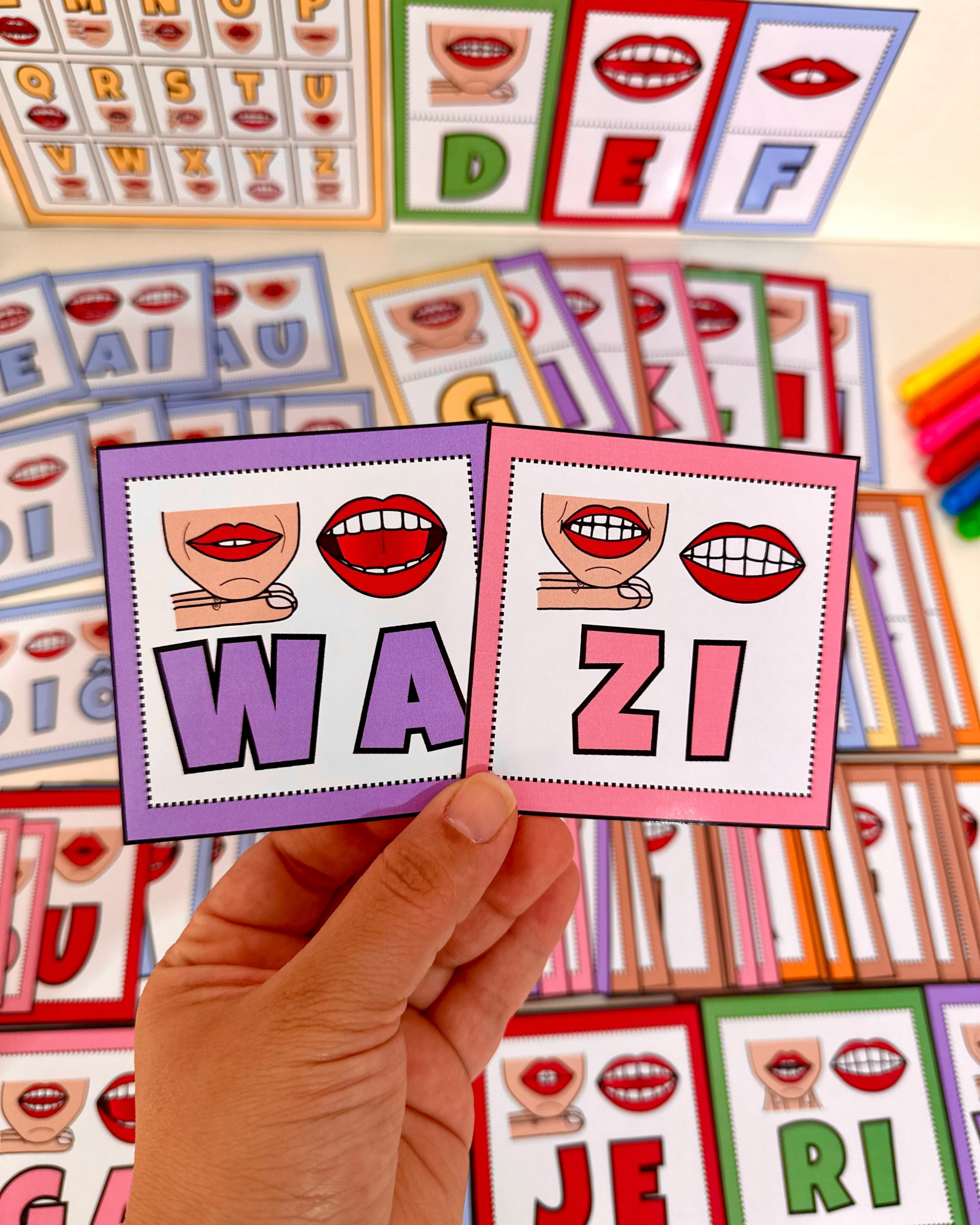 Este material foi desenvolvido para reforçar a associação entre letras, sons e movimentos articulatórios, facilitando o aprendizado da leitura e escrita, especialmente para crianças com dificuldades de linguagem ou em processo de intervenção.