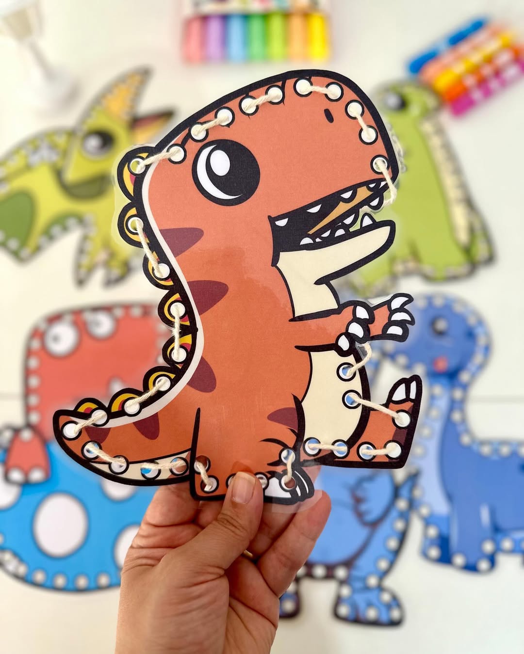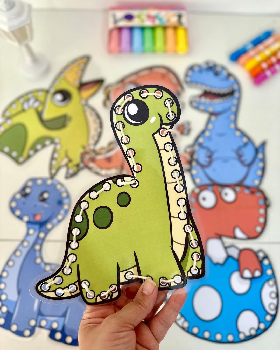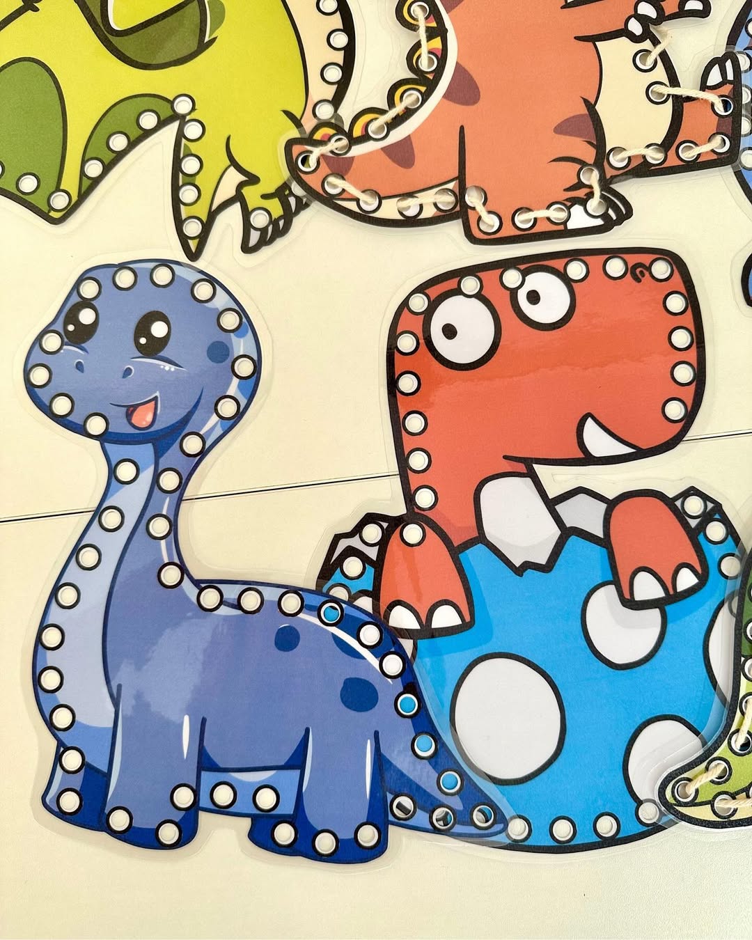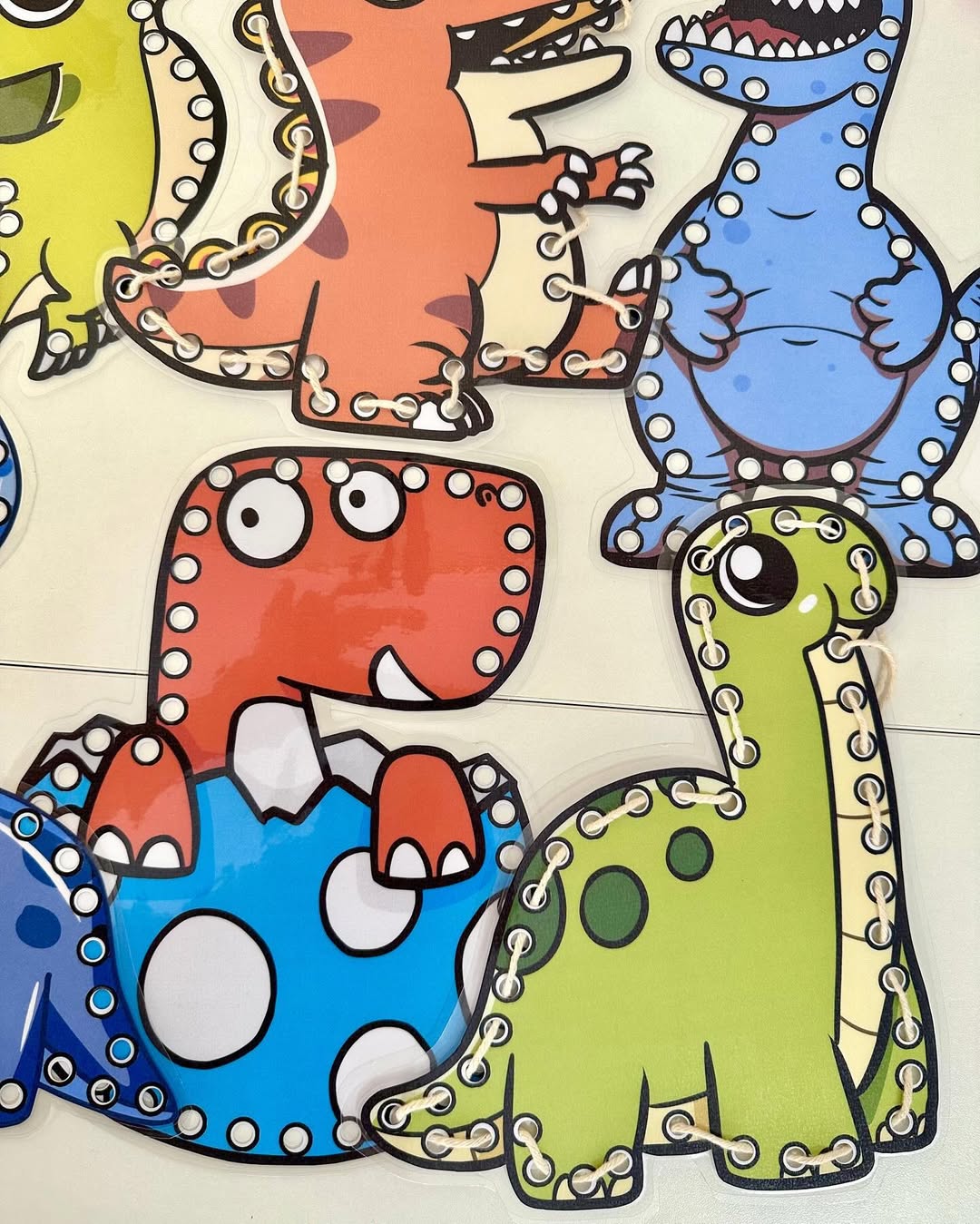 O material possui 7 dinossauros para alinhavos.