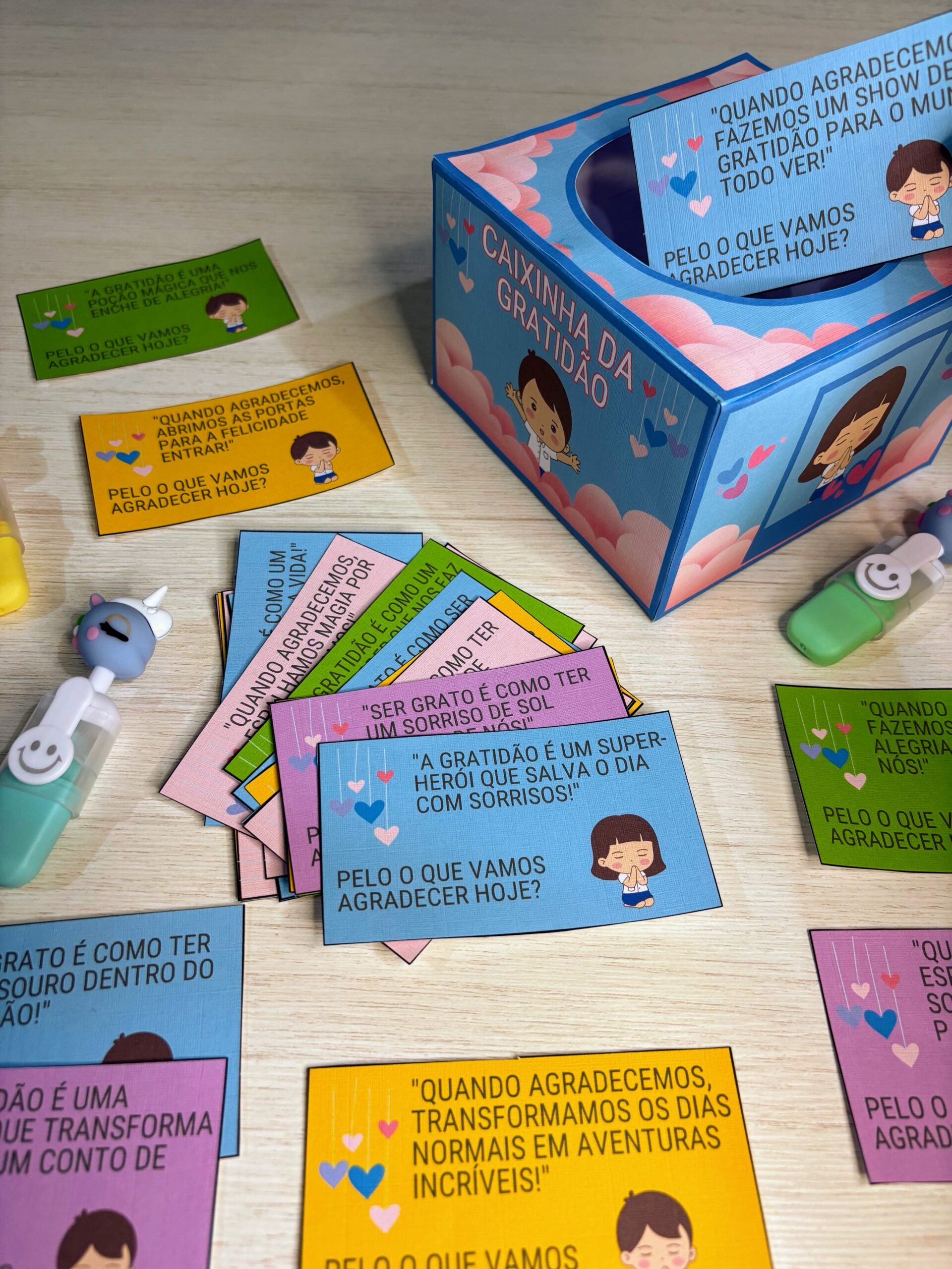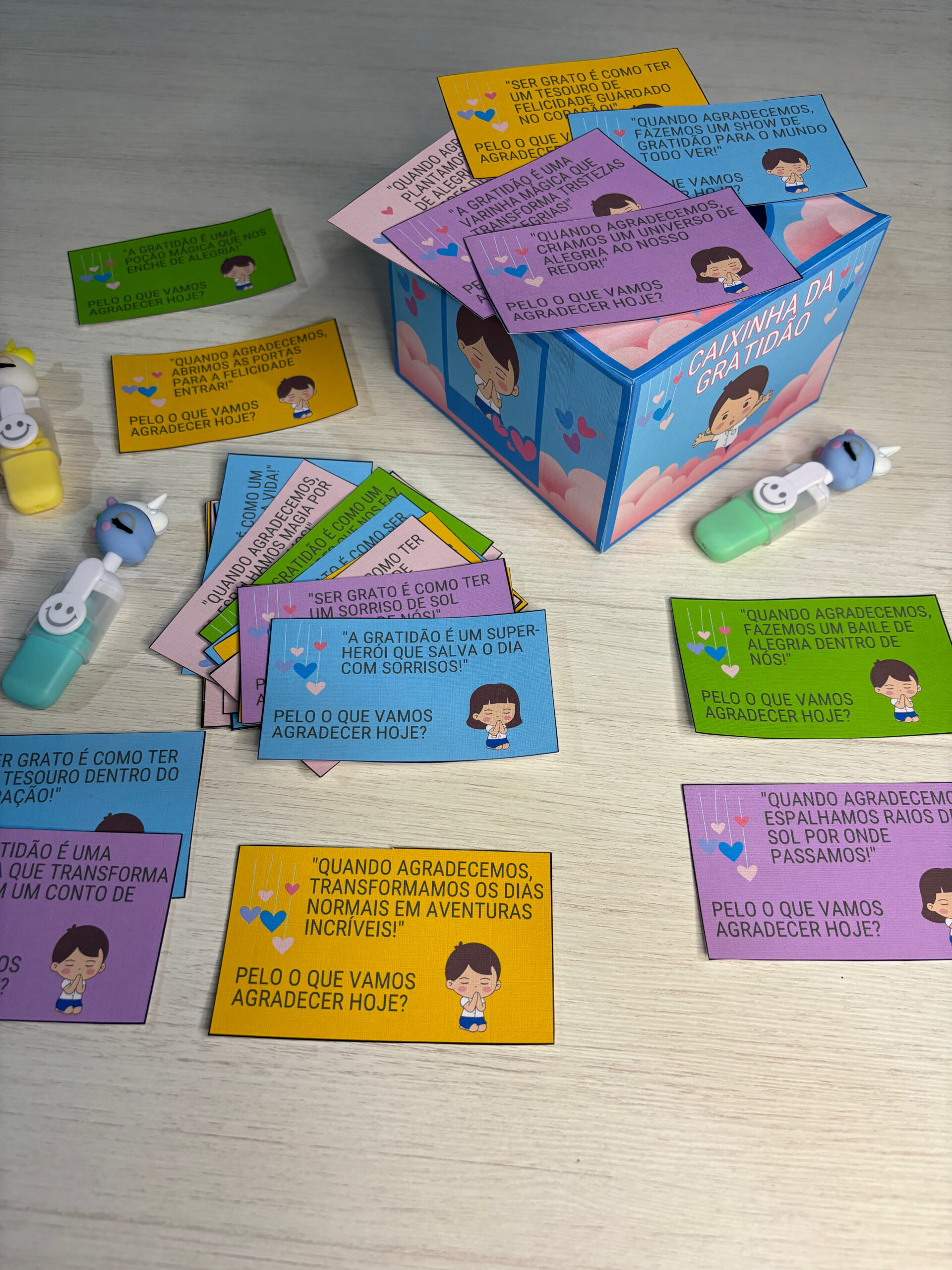 O material possui 30 fichas com frases sobre a gratidão.
