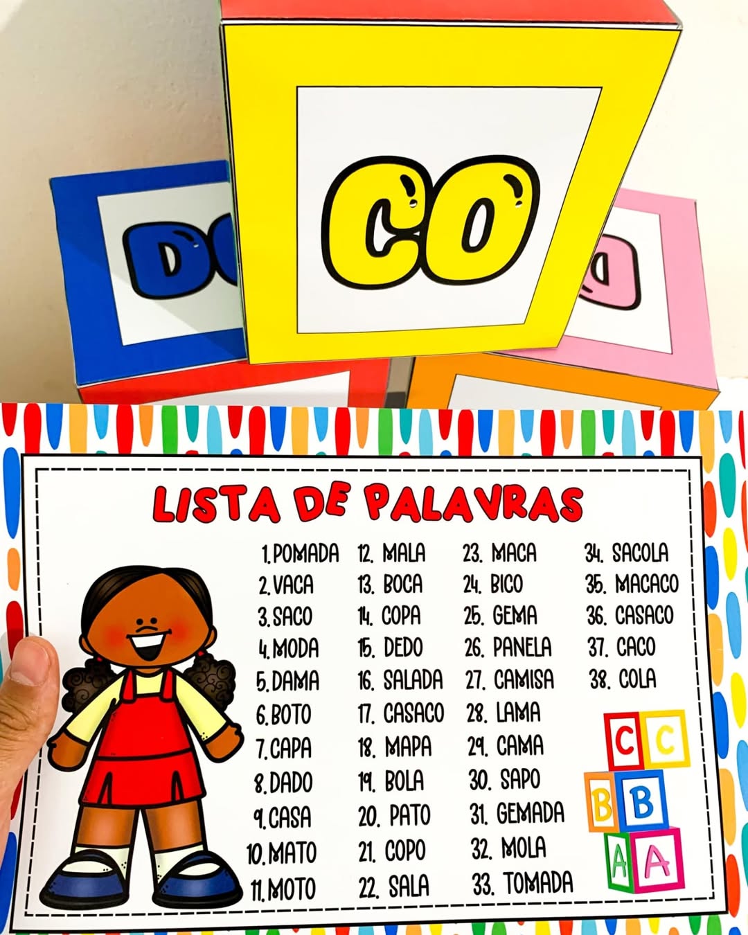 Ao todo são 38 palavras diferentes para estimular a leitura e a escrita de forma divertida e prazerosa.