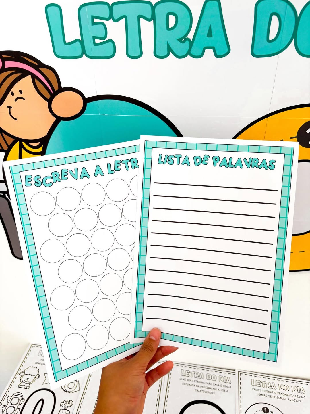 • Cartazes ampliados para exploração coletiva (pinta letra, escreva a letra, lista de palavras)