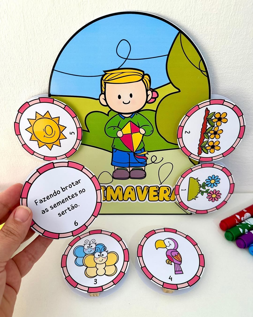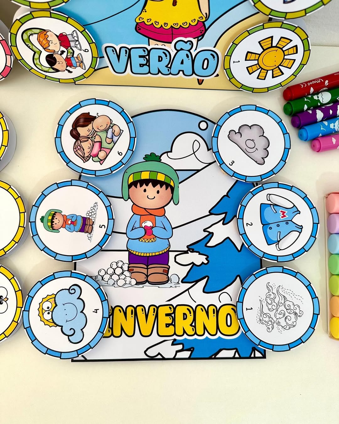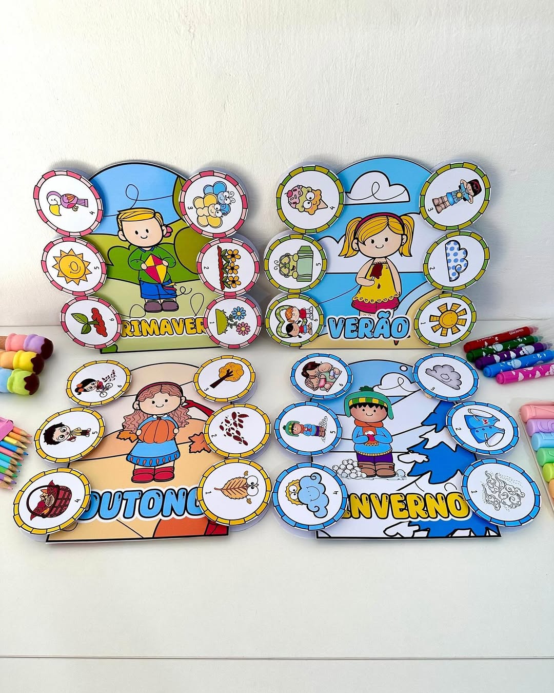 O arquivo possui 4 luvas com poemas das estações e fichas ilustradas.