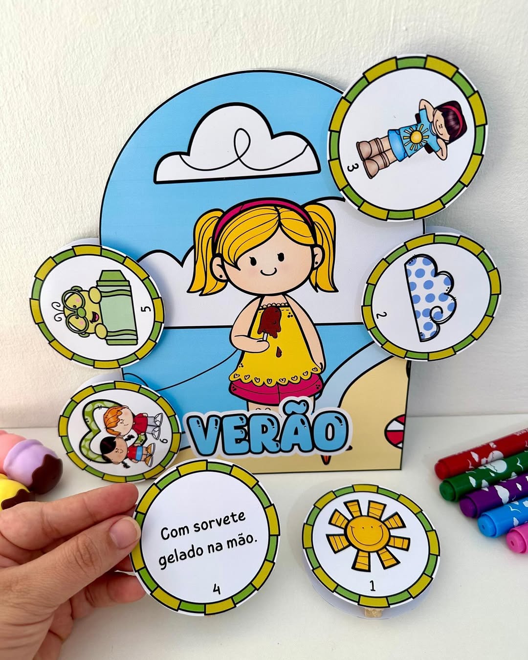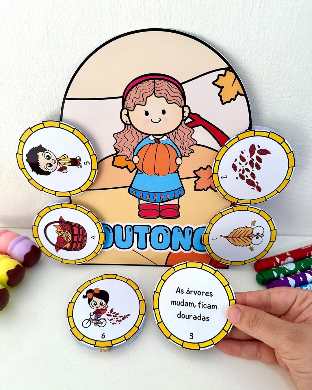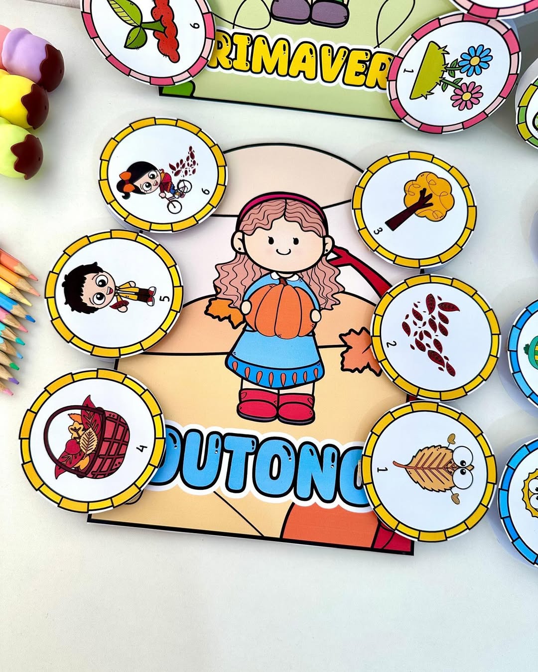 O arquivo possui 4 luvas com poemas das estações e fichas ilustradas.