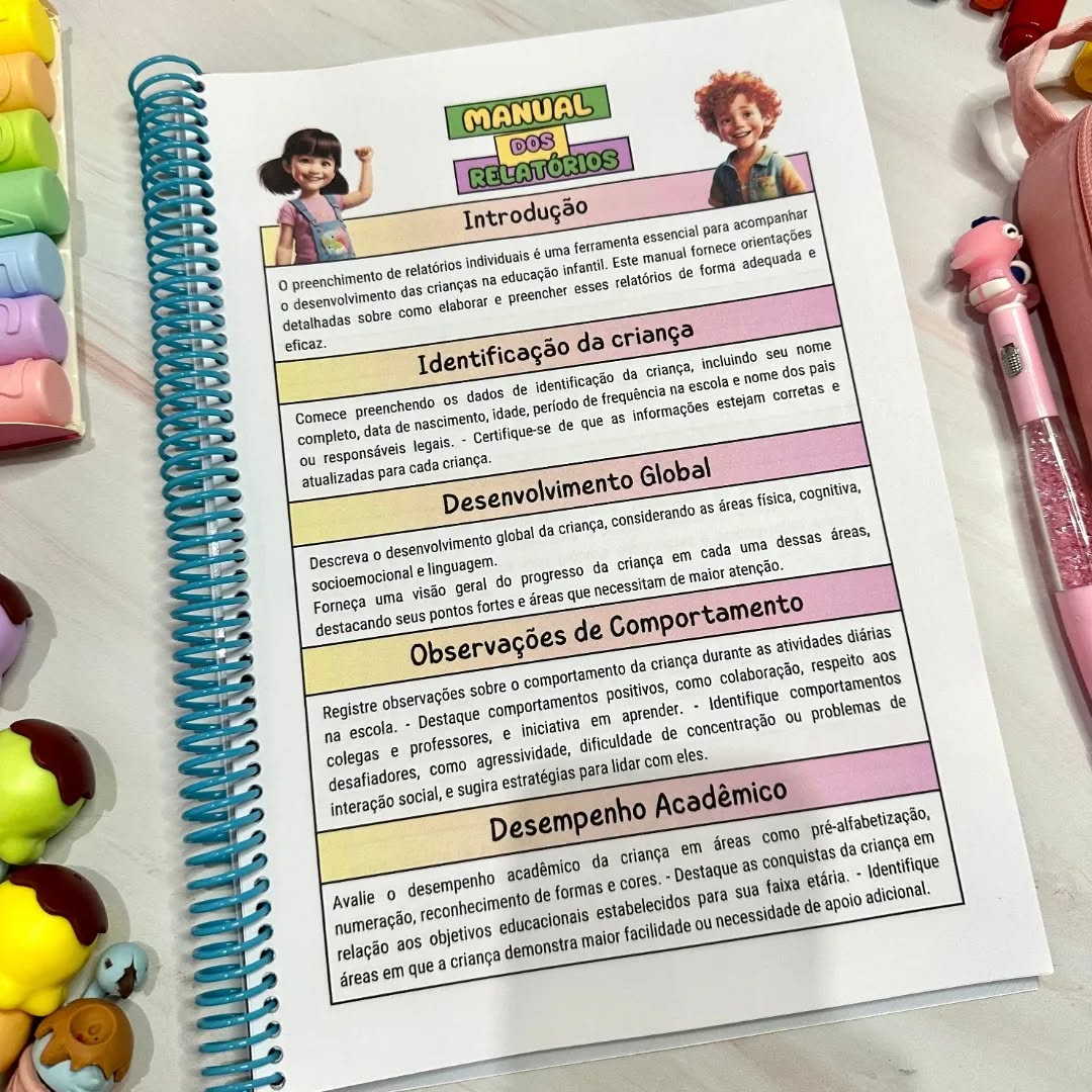 Elaborar relatórios individuais dos alunos de Maternal e Pré-escola pode ser uma tarefa demorada e exaustiva para o professor! Por isso, apresentamos o Manual dos Relatórios, uma ferramenta indispensável para simplificar e agilizar esse processo tão importante.