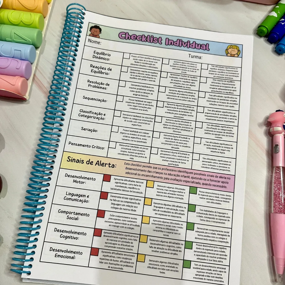 Com mais de 40 itens cuidadosamente selecionados para avaliação de cada criança, o checklist do Manual para Relatórios oferece uma visão abrangente do desenvolvimento socioemocional, comportamental, cognitivo e motor de cada aluno.