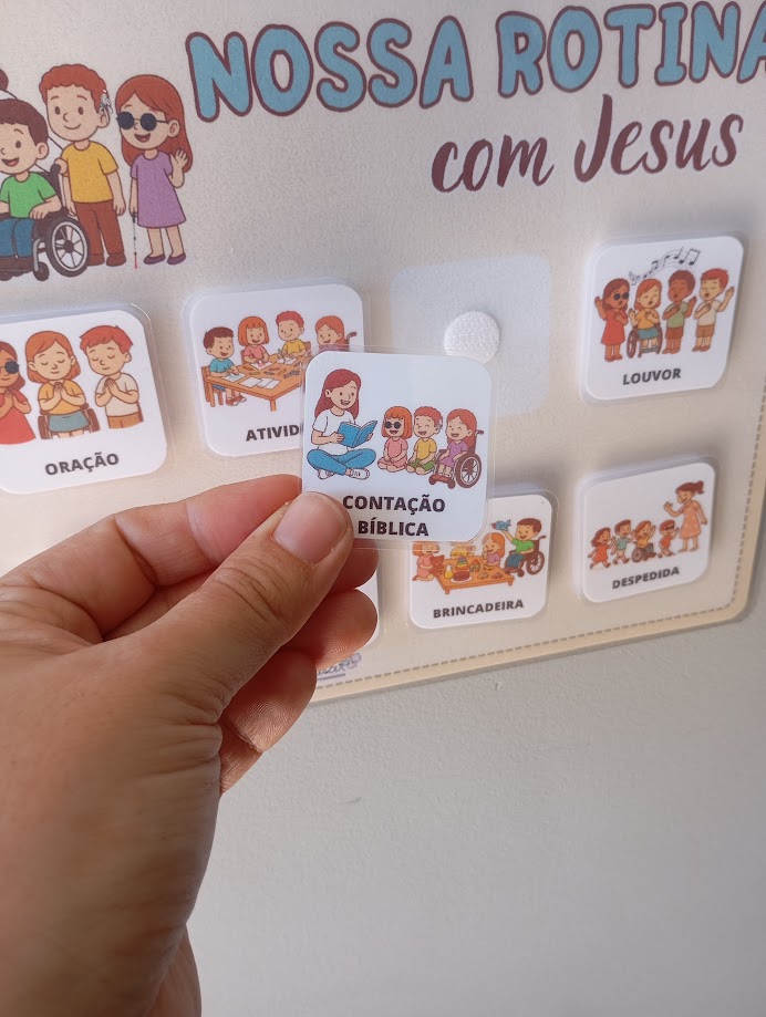 Quadro de rotina visual cristão, ideal para crianças típicas e atípicas.