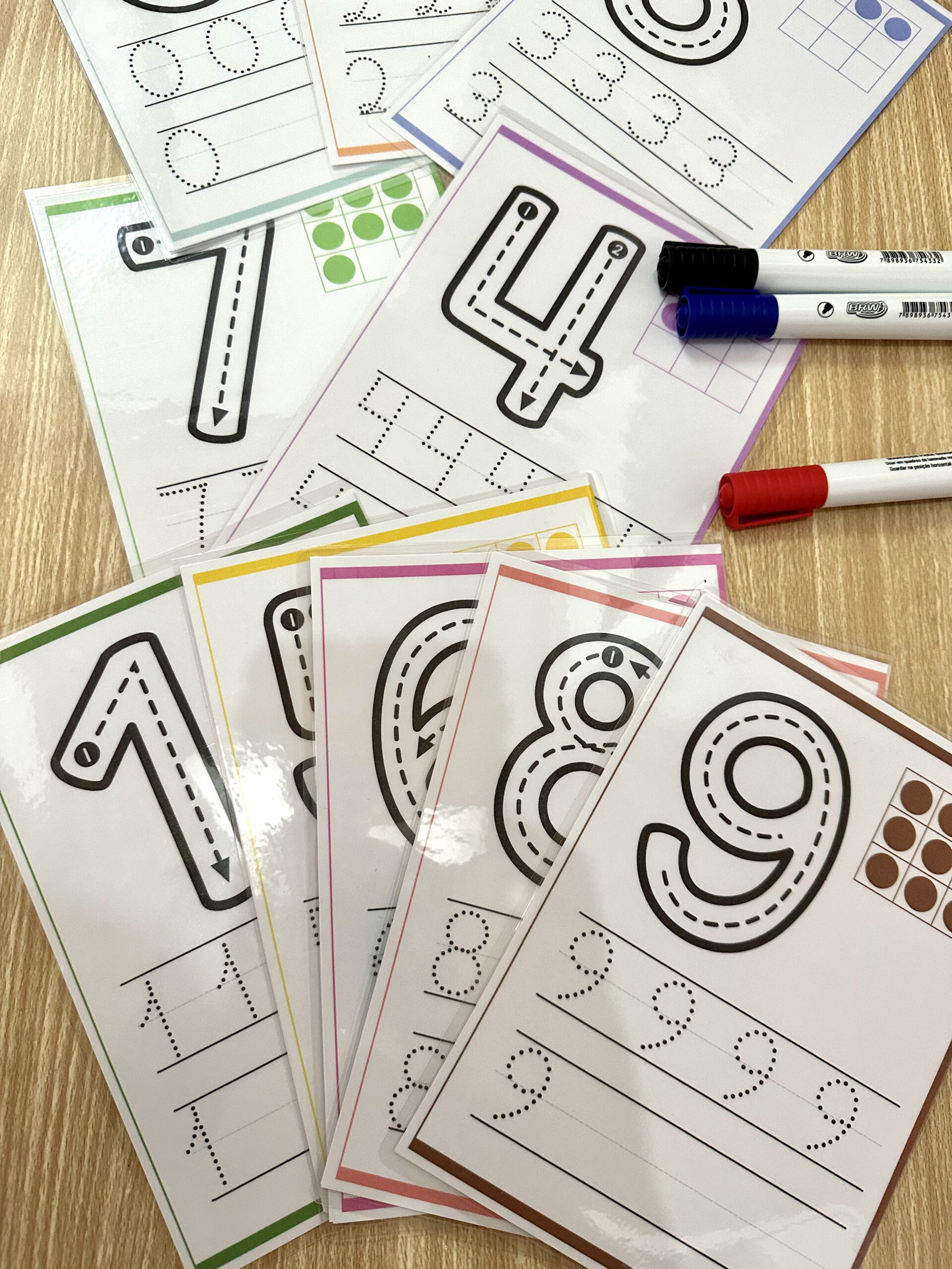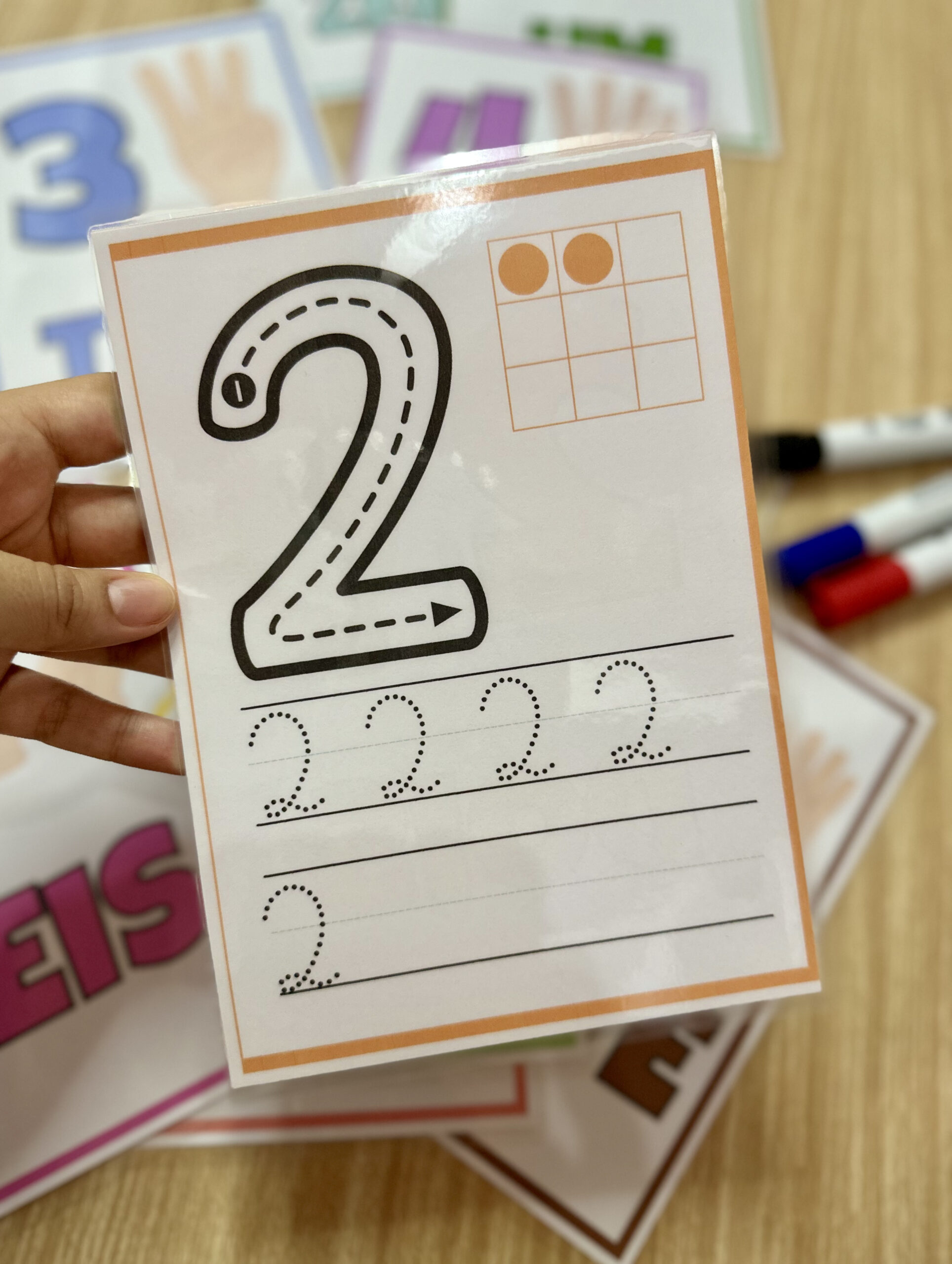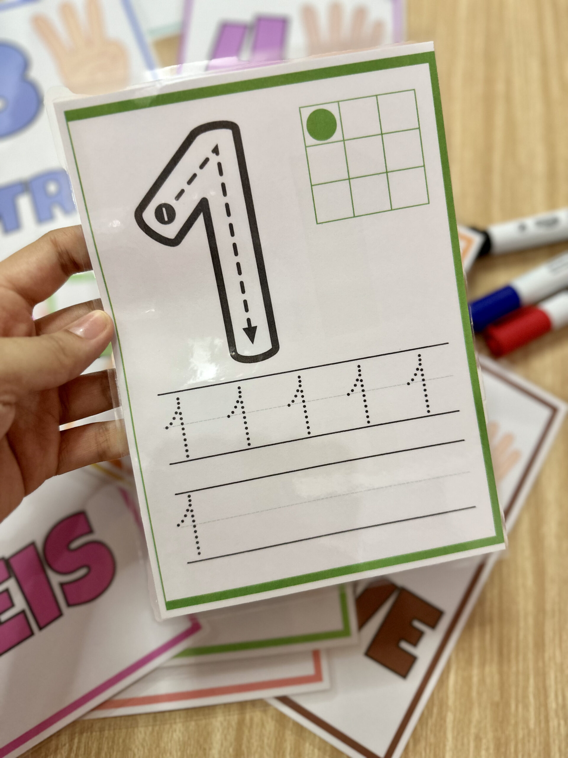 Ótimo material para crianças que estão iniciando o processo do traçado dos numerais, pois a criança poderá treinar os traçados no recurso, e só depois ir para a folha de atividades ou caderno, trazendo mais segurança e confiança nessa fase inicial.